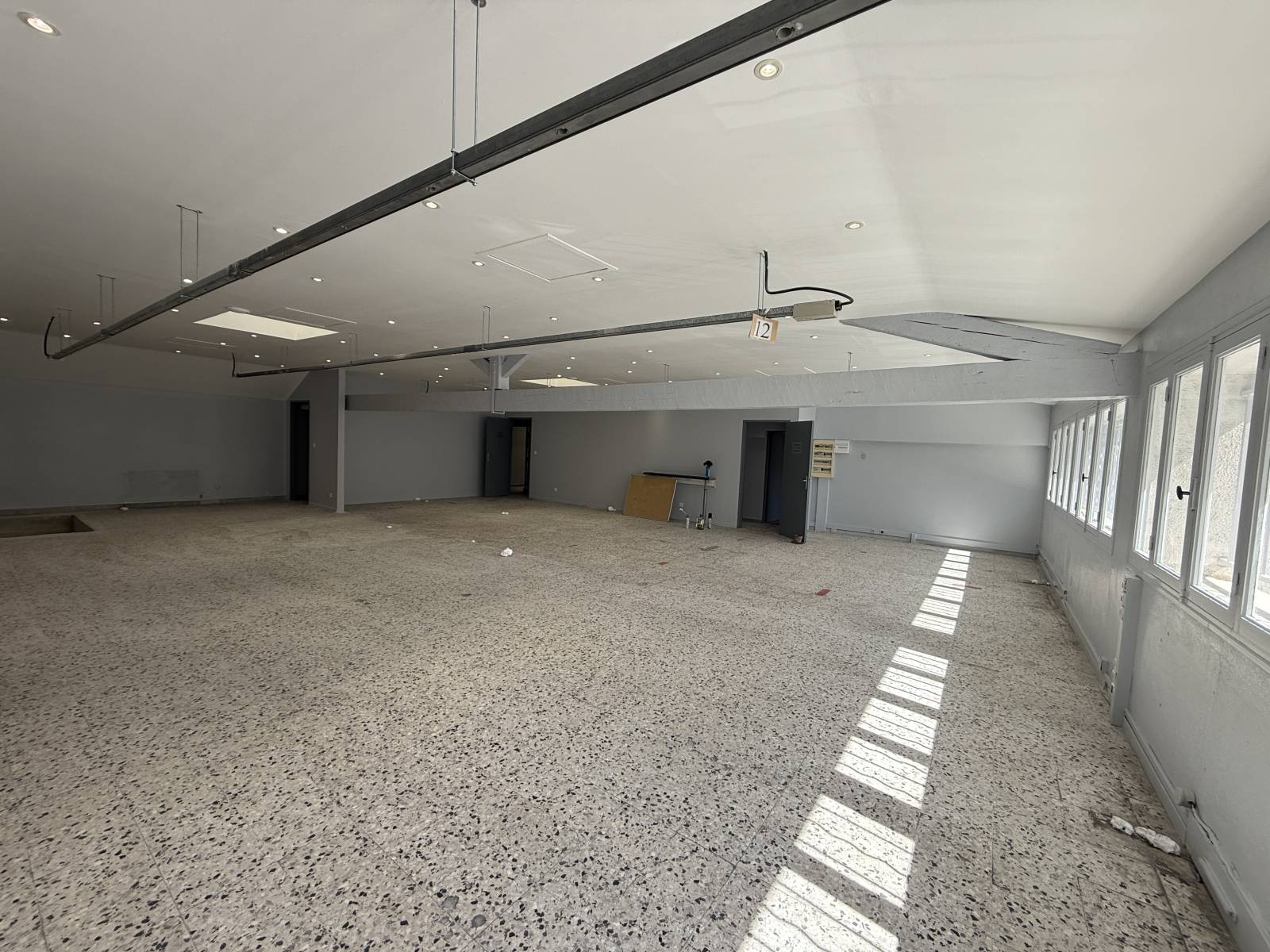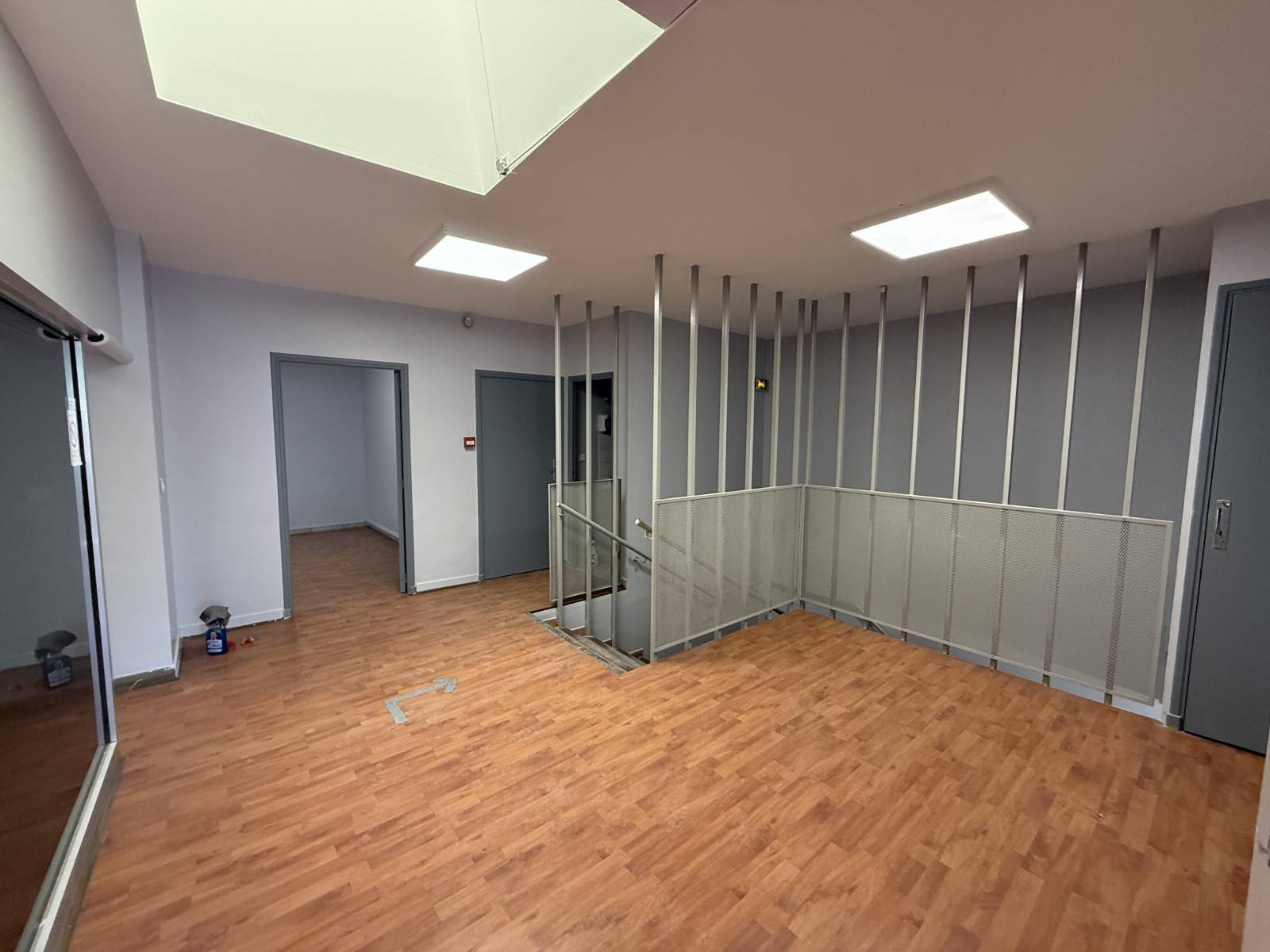 Composé d'un rez-de-chaussée, avec une pièce de 37 m² donnant accès, via un escalier, à un plateau de 268 m² à l’étage, composé de plusieurs bureaux.