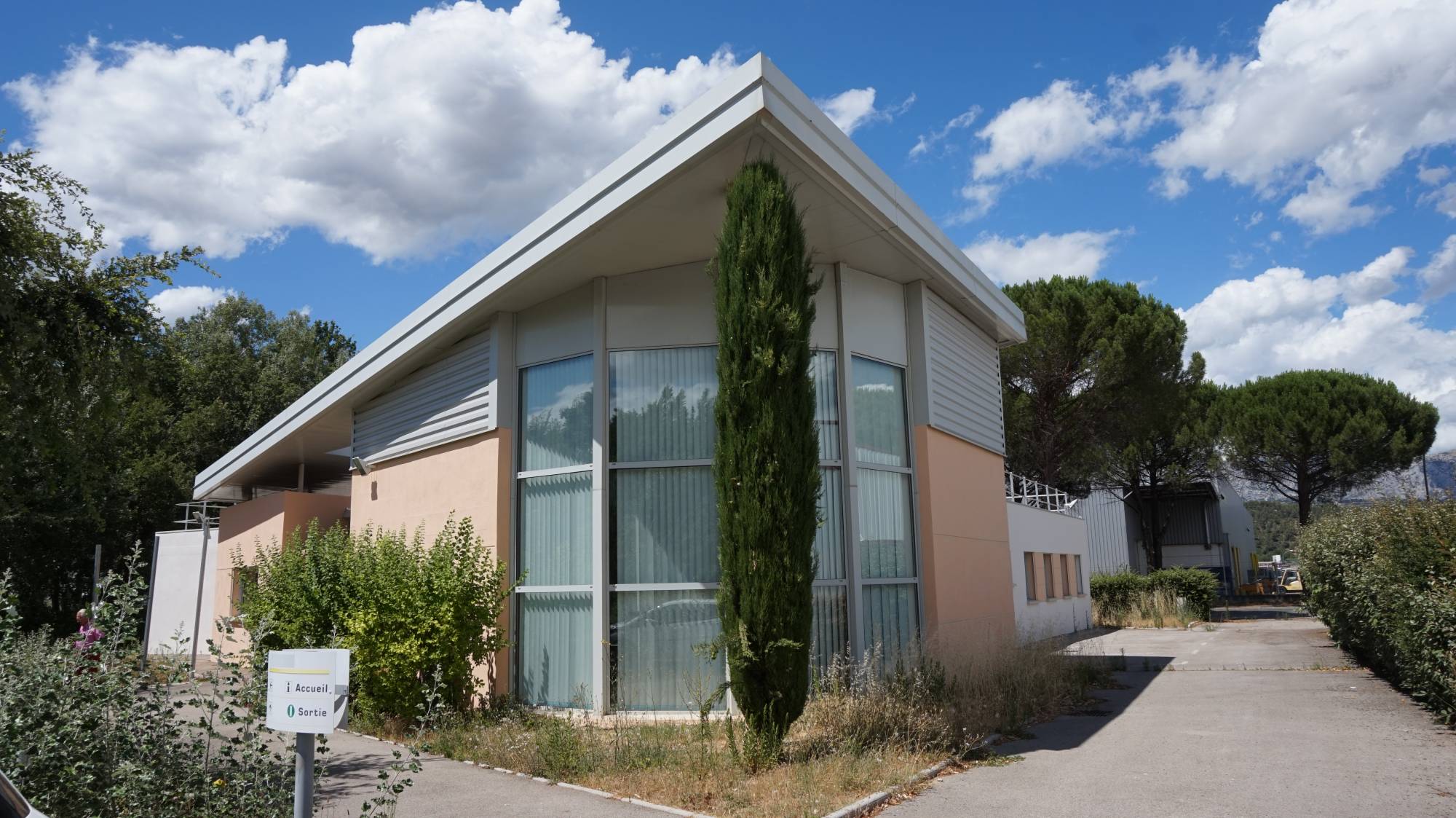 Le cabinet immobilier Provencia vous propose à la location sur le secteur de Rousset 13790 dans une zone industrielle un batiment de bureaux de standing sur un terrain de 3 500 m² arboré avec stationnement pour clientèle et personnels. Batiment de plain pied organisé autour d'un patio central.