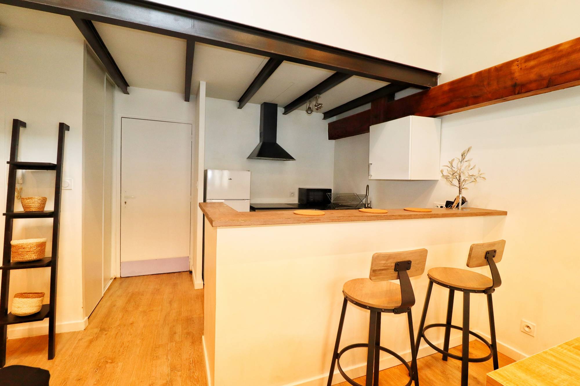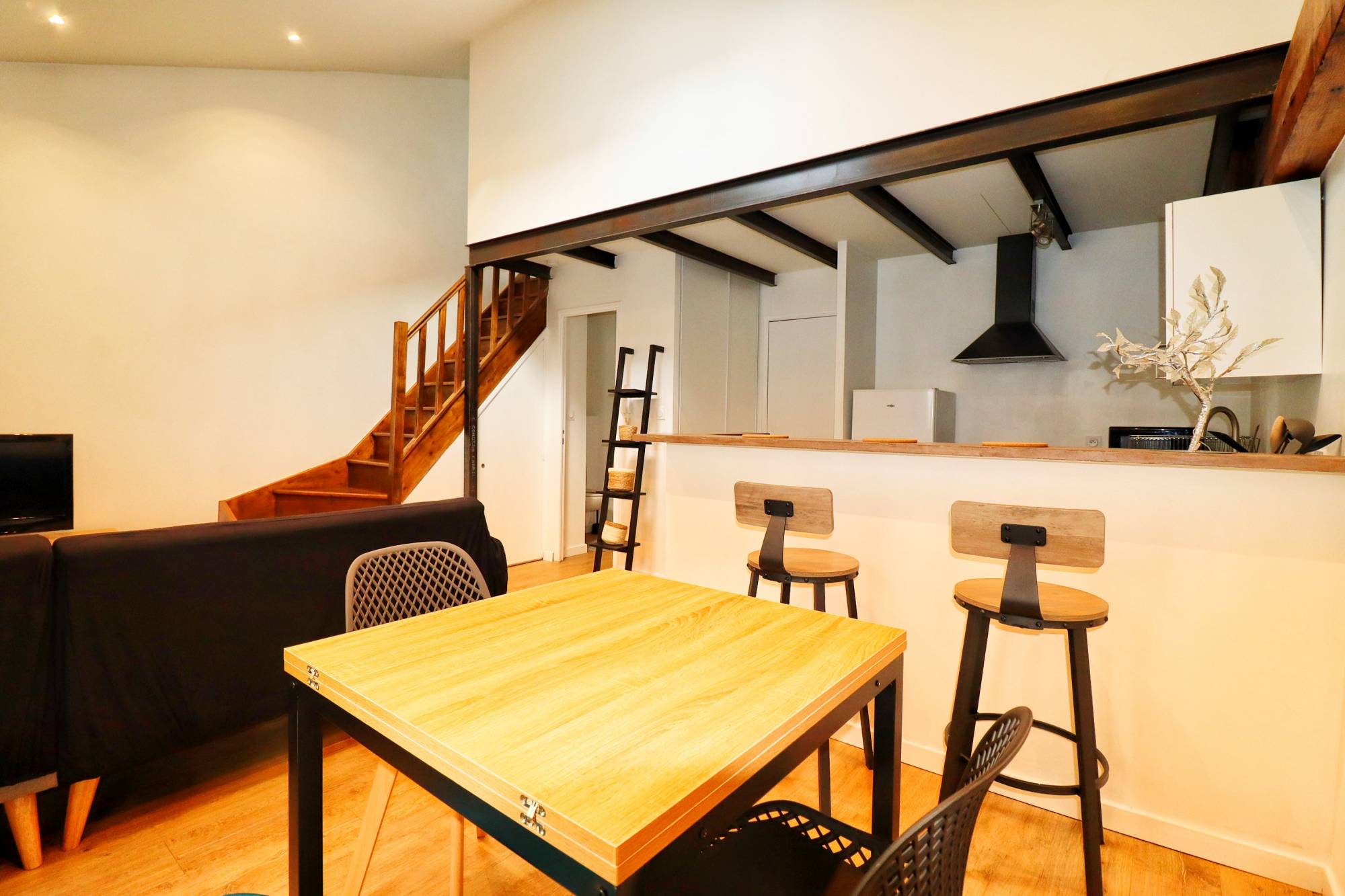 Conception / Camas, secteur recherché, dans petit immeuble d'un seul étage très bien entretenu, en 1er étage, magnifique 2 pièces meublé en duplex.